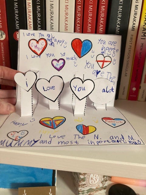 On Valentine’s Day this year, always a shitty day for single people, when it’s hard not to feel that you are the least important individual in the world, my son excitedly rummaged in his backpack for something he had made at school. “You’re going to love it Mum,” he told me confidently.